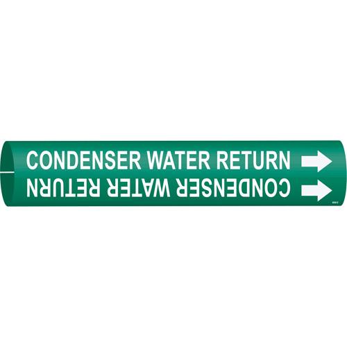 “Condenser Water Return” Pipe Marker – Plastic, White on Green, 4″ – 6″, 2-13/16″, 2-13/16″, 1-1/4″, English, Snap-On