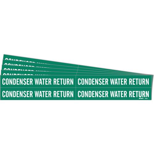“Condenser Water Return” Pipe Markers – Vinyl, White on Green, 3/4″ – 2-3/8″, 1-1/8″, 7″, 3/4″, English, Self-Adhesive, 4