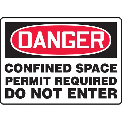 “Confined Space Permit Required” Sign – Aluminum, Plastic, Vinyl, 7″, 10″, Bolt-On, English, Confined Space, Danger; Confined Space Permit Not Required Do Not Enter, ‘-20°F to 140°F, 5 years outdoors