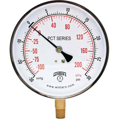 Contractor Pressure Gauge – 4-1/2″, 30 – 0 – 30 psi, Bottom Mount, Analogue, 1/4″ NPT, ±1% ANSI/ASME Grade 1A, 5 Years, IP52
