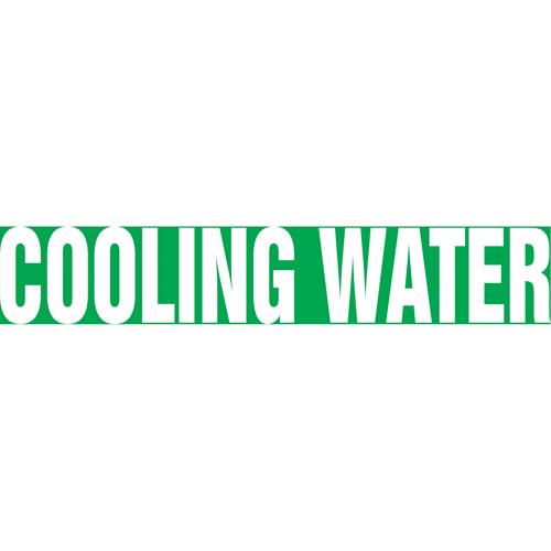 “Cooling Water” Pipe Marker – Vinyl, White on Green, 1-1/2″ – 2″, 1-1/2″, 8″, 3/4″, English, Self-Adhesive, SSB