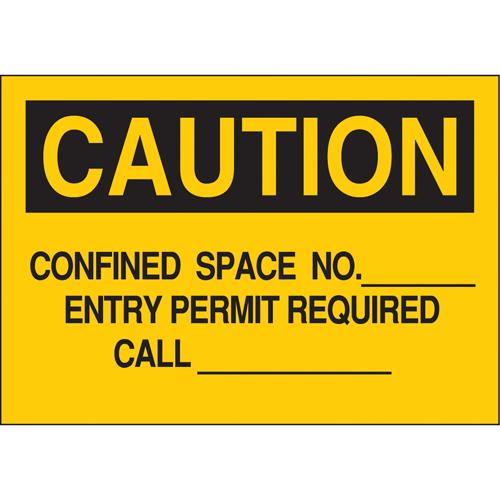 Customizable “Confined Space” Sign – Plastic, Vinyl, 7″, 10″, Bolt-On, English, Confined Space, Caution; Confined Space No._ Entry Permit Required Call_