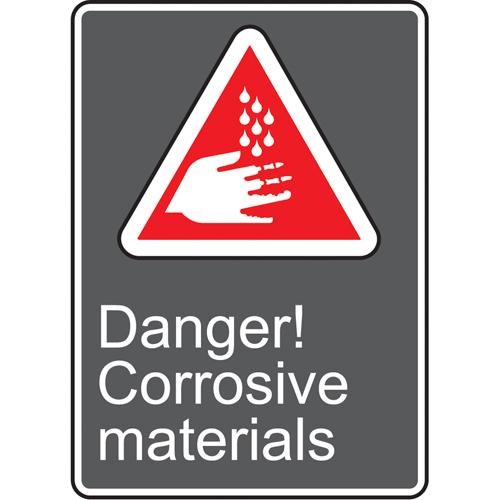 Danger! Corrosive Materials CSA Standard Safety Sign – Vinyl, Aluminum, 14″, 10″, Adhesive, English with Pictogram, Chemicals and Hazardous Materials, Danger! Corrosive Materials w/Pictogram