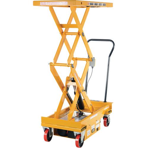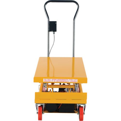 - Battery-powered unit allows operators to raise and lower platform with the push of a button