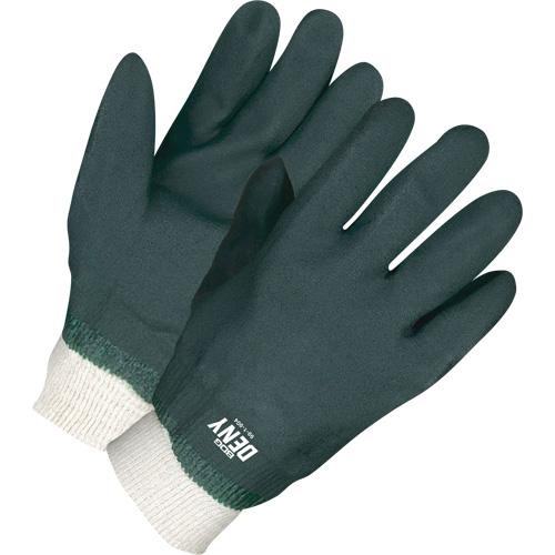 Deny™ Coated Gloves with Knit Wrists – One Size, Cotton, PVC, Full Dip, Unlined, Green