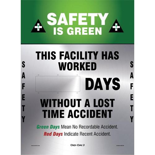 - Displays day count without accidents in green and if lost time occurs, it sets display to red until goal is met again