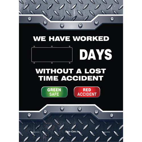 Digi-Day® Electronic Scoreboard Motivational Safety Sign – Aluminum, 28″, 20″, Hanging, English with Pictogram, Safety Incentive and Motivational, We Have Worked __ Days Without A Lost Time Accident