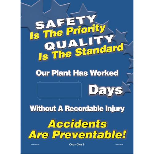 - Displays count days without an accident in green, and if a lost time accident occurs, set the display back to red until you meet your new safe-days goal