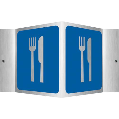 - 3D signs, projecting 45° from the wall, provide optimum viewing from front and sides