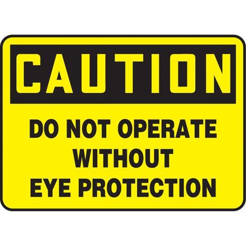 - Reminds workers that they must wear eye protection prior to operating equipment