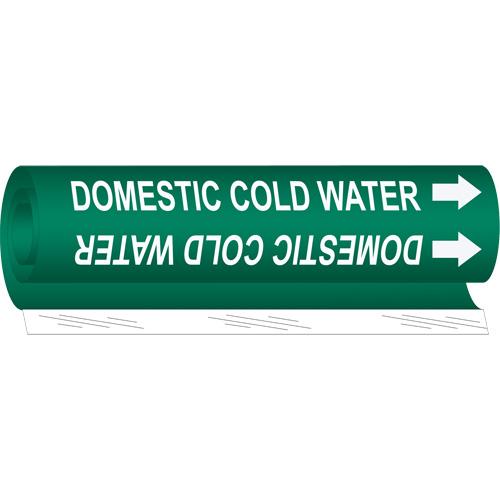 “Domestic Cold Water” Pipe Marker – Plastic, White on Green, 2-1/2″ – 7-7/8″, 26″, 12″, 1-1/4″, English, Wrap-Around