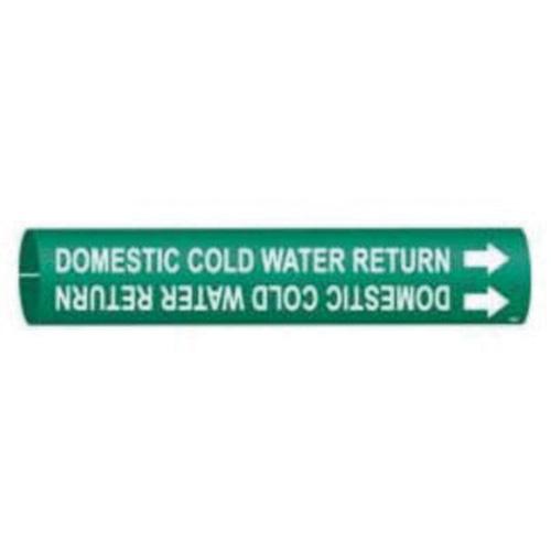 “Domestic Cold Water Return” Pipe Marker – Plastic, White on Green, 1-1/2″ – 2-3/8″, 7/8″, 7/8″, 3/4″, English, Snap-On