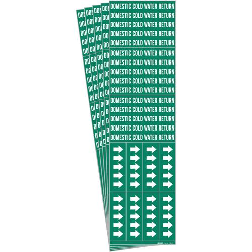 “Domestic Cold Water Return” Pipe Markers – Vinyl, White on Green, 0″ – 3/4″, 2-1/4″, 2-3/4″, 1/2″, English, Self-Adhesive, 3
