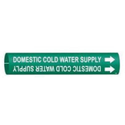 “Domestic Cold Water Supply” Pipe Marker – Plastic, White on Green, 4″ – 6″, 2-13/16″, 2-13/16″, 1-1/4″, English, Snap-On
