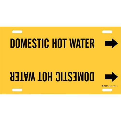 “Domestic Hot Water” Pipe Marker – Plastic, Black on Yellow, 6″ – 7-7/8″, 8″, 16″, 1-1/4″, English, Strap-On