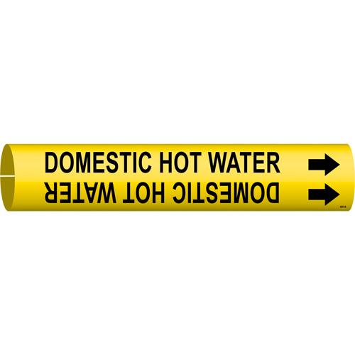 “Domestic Hot Water” Pipe Marker – Plastic, Black on Yellow, 1-1/2″ – 2-3/8″, 7/8″, 7/8″, 3/4″, English, Snap-On