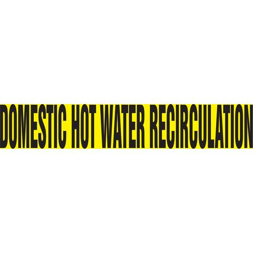 “Domestic Hot Water Recirculation” Pipe Marker – Vinyl, Black on Yellow, 2-1/2″ – 6″, 2-1/2″, 12″, 1-1/4″, English, Self-Adhesive, SSD