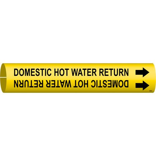 “Domestic Hot Water Return” Pipe Marker – Plastic, Black on Yellow, 1-1/2″ – 2-3/8″, 7/8″, 7/8″, 3/4″, English, Snap-On