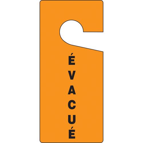 Door Knob Safety Tags – French, Plastic, 4″, 9″, Evacuated, Standard