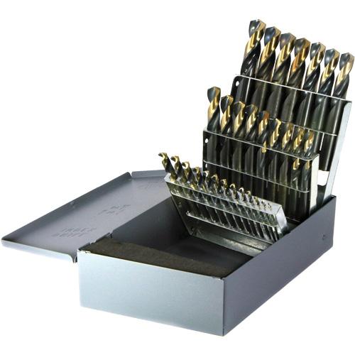 - Includes: 1/16" – 1/2" by 64ths bits
