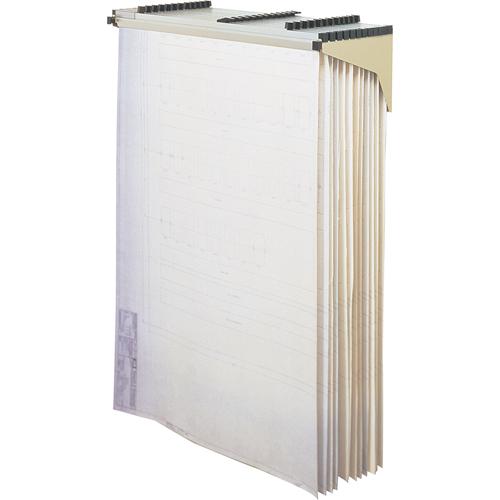Hanging clamps simply drop in and out of rack for easy, economical filing