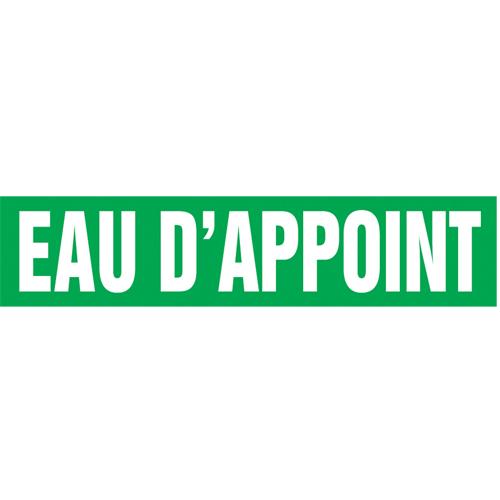 “Eau d’Appoint” Pipe Marker – Vinyl, White on Green, 3/4″ – 1-1/4″, 1″, 8″, 1/2″, French, Self-Adhesive, SSA