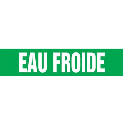 “Eau Froide” Pipe Markers – Vinyl, White on Green, 2-1/2″ – 6″, 2-1/2″, 12″, 1-1/4″, French, Self-Adhesive, Eau Froide