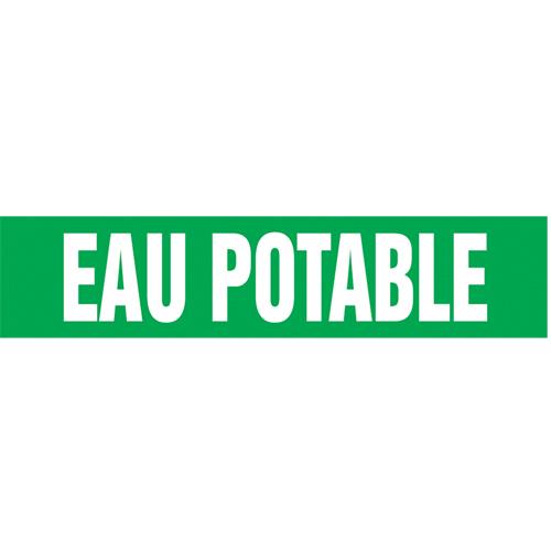 “Eau Potable” Pipe Marker – Vinyl, White on Green, 3/4″ – 1-1/4″, 1″, 8″, 1/2″, French, Self-Adhesive, SSA