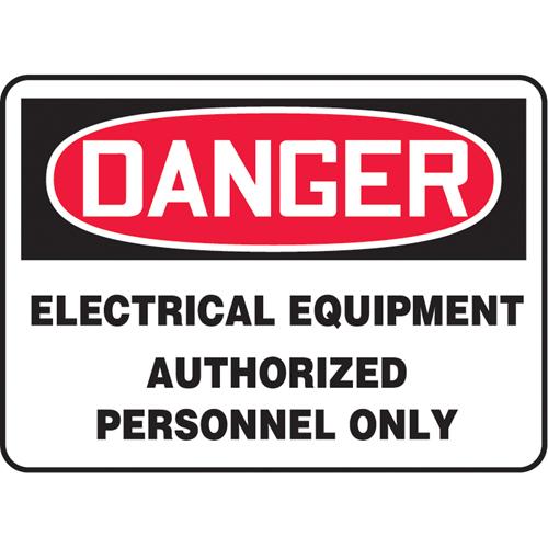 “Electrical Equipment” Sign – Aluminum, Plastic, Vinyl, 7″, 10″, Bolt-On, English, Electrical, Danger; Electrical Equipment Authorized Personnel Only