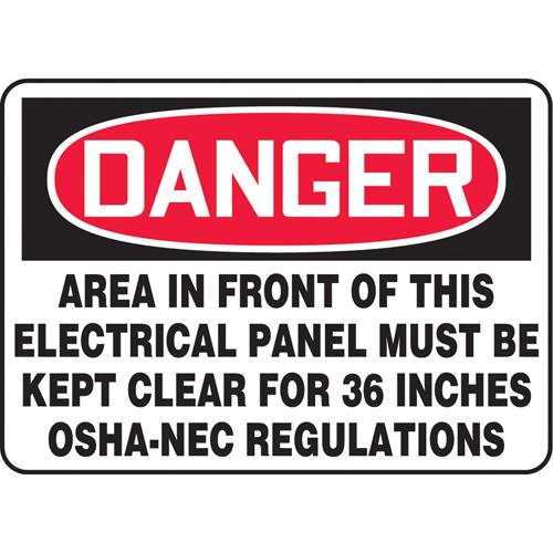 Danger; Area In Front Of This Electrical Panel Must Be Kept Clear For 36 Inches Osha-Nec Regulations