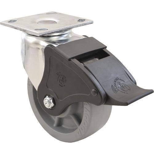 Emaxx™ Caster – 8″ (203.2 mm), 1200 lbs. (544.3 kg.), Envirothane™, Swivel with Brake, Steel, 2″ (50.8 mm), 2-5/8″ – 3″ (67 mm x 76 mm), 3/8″ (9.52 mm), 3-27/32” x 4-1/2” (97.6 mm x 114.3 mm), Roller