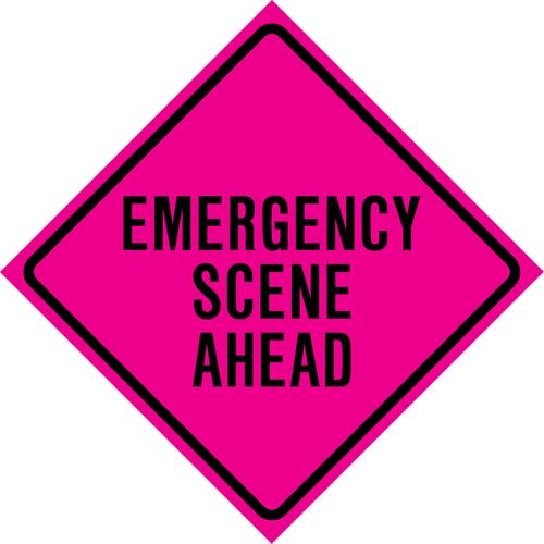 “Emergency Scene Ahead” Roll-Up Traffic Sign – Vinyl, 36″, 36″, Stand, English, Traffic/Construction, Emergency Scene Ahead