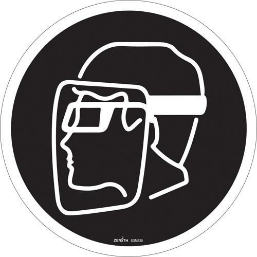 Face Protection Required CSA Standard Safety Sign – Vinyl, Plastic, 12″, 12″, Adhesive, Pictogram, Personal Protection, 4 mil, 1 Year Limited