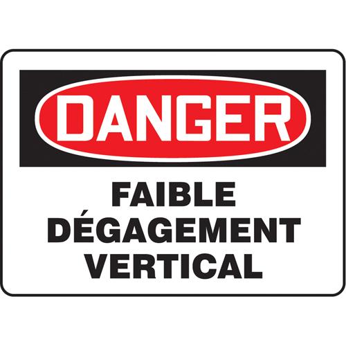 “Faible dégagement vertical” Sign – Aluminum, Plastic, Vinyl, 10″, 14″, Bolt-On, French, Equipment, Danger; Faible Dégagement Vertical, ‘-20°F to 140°F, 5 years outdoors