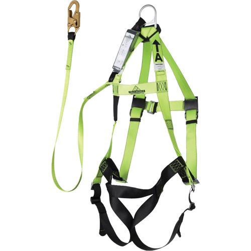 - Features harness and integral shock absorbing lanyard