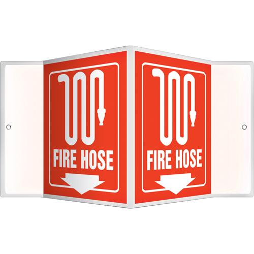“Fire Hose” Projection™ Sign – Plastic, 6″, 5″, Bolt-On, English with Pictogram, Fire and Emergency, Fire Hose w/Pictogram & Downward Arrow, 3D, 4″