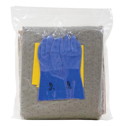 - Includes: (2) Husky Strips – 8" wide x 64" long x1/2" high, (15) MBT Universal Pads – 15" wide x 18" long, (1) pair of PVC Gloves, (1) disposal bag