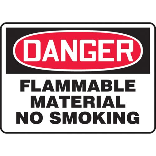 “Flammable Material” Sign – Aluminum, Plastic, Vinyl, 10″, 14″, Bolt-On, English, Chemicals and Hazardous Materials/Smoking Control, Danger; Flammable Material No Smoking