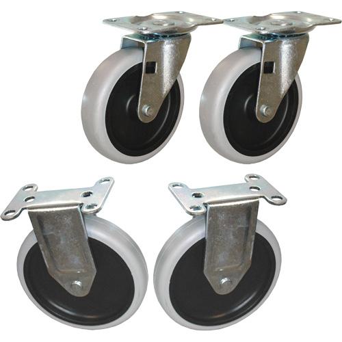 - Includes: (2) Swivel casters, (2) Rigid casters, (24)1/4"-14 x 1" Phillips head screws