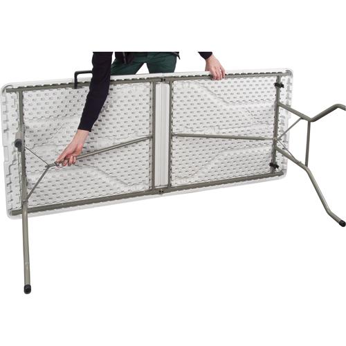 - Lightweight with ability to fold the table in half to 3 1/2" thick for easy storage