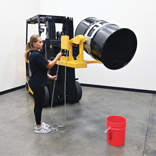 - Provided with a 15' chain to allow the drum to be rotated up to 360° from the fork truck operator's seat