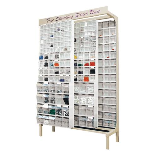 • System features four individual panels filled with tip out bins