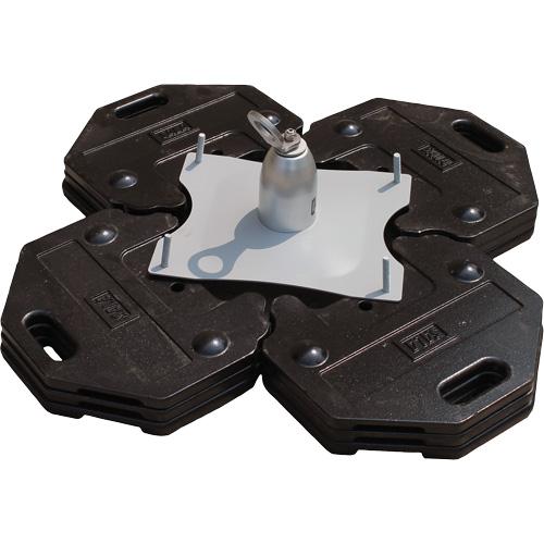 - Freestanding system is easily placed on top of the roof surface to provide tie-off point for one worker