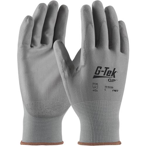 - G-Tek® NPG, grey polyurethane coated palm and fingers on grey seamless knit nylon
