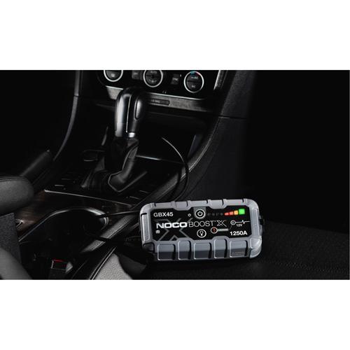 - The GBX45 is equipped with a 100-Lumen LED flashlight with various brightness modes, SOS, and emergency strobe— handy to have as a roadside or road trip tool