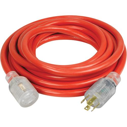 Generator Extension Cord with Quad Tap – Outdoor, 25′, 10, 30 A, Red, 240 V, 4