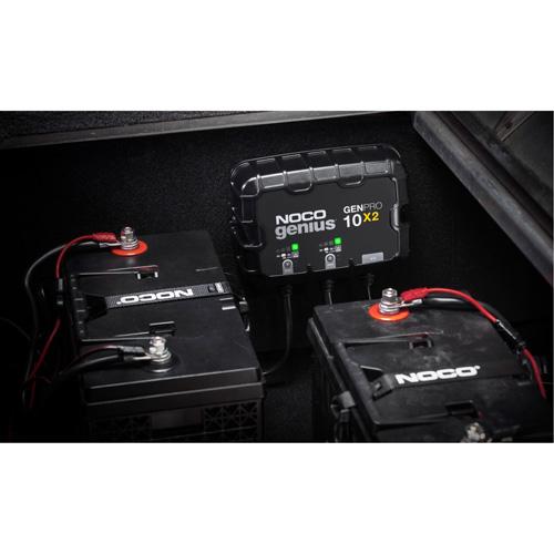 - A two-bank onboard battery charger rated at 20-amps (10-amps per bank) for 12-volt batteries, including marine, boat, starter, and deep-cycle batteries