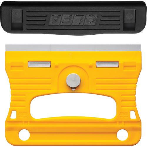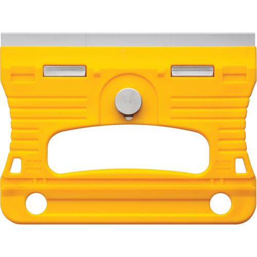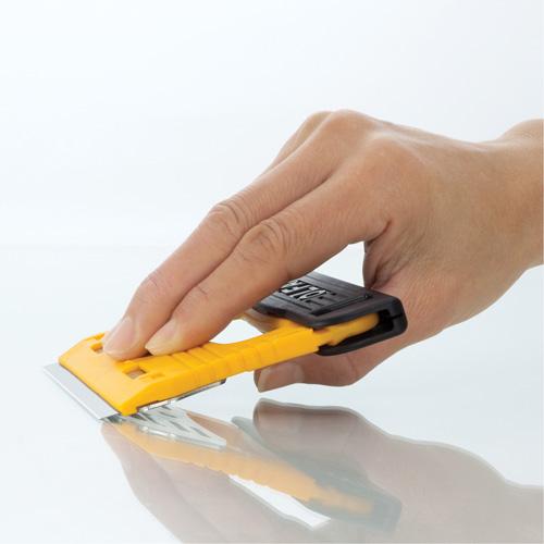 - Features a unique safety blade guard that attaches over the handle
