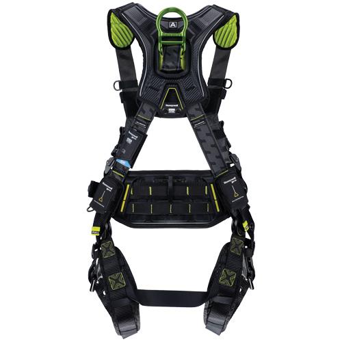 - Tool tether anchors and lanyard keepers are positioned in several convenient locations, including front and waist