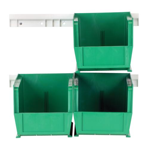 - Hang-and-stack bin complete package is a modifiable storage system; can be extended with a variety of accessories including extra bins and rails